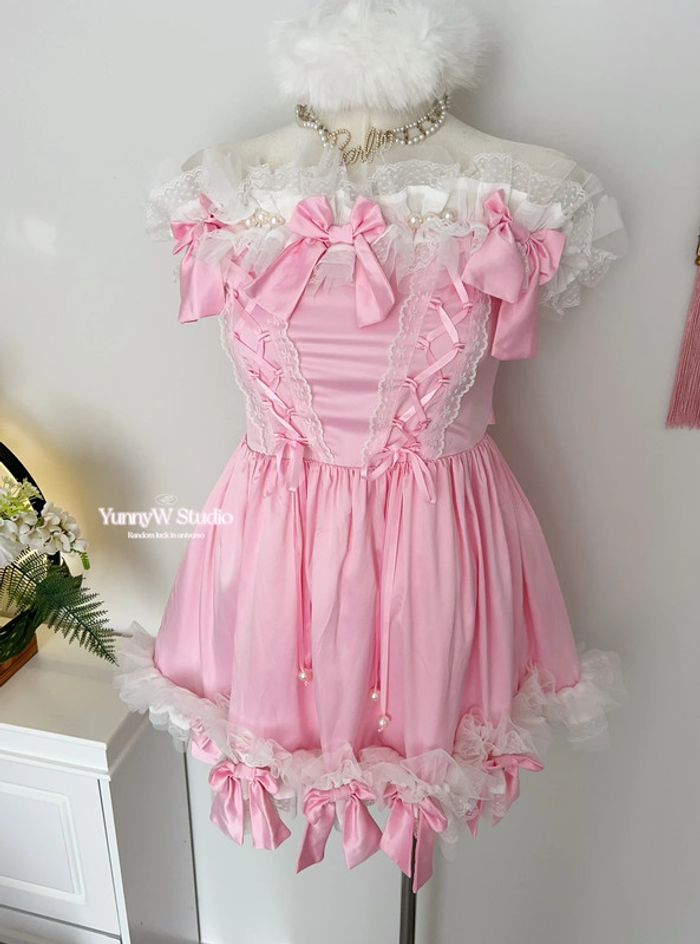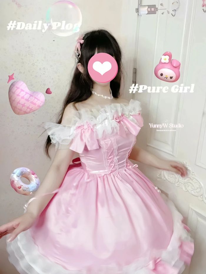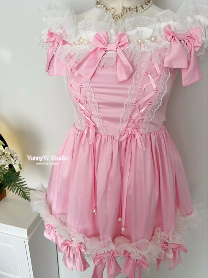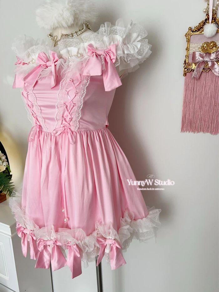Dress Robe Vintage Rose Pink Princesse Barbie Floral Cosplay Lolita