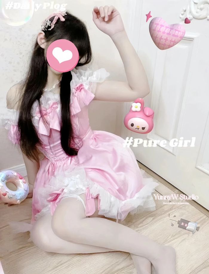 Dress Robe Vintage Rose Pink Princesse Barbie Floral Cosplay Lolita - photo numéro 10