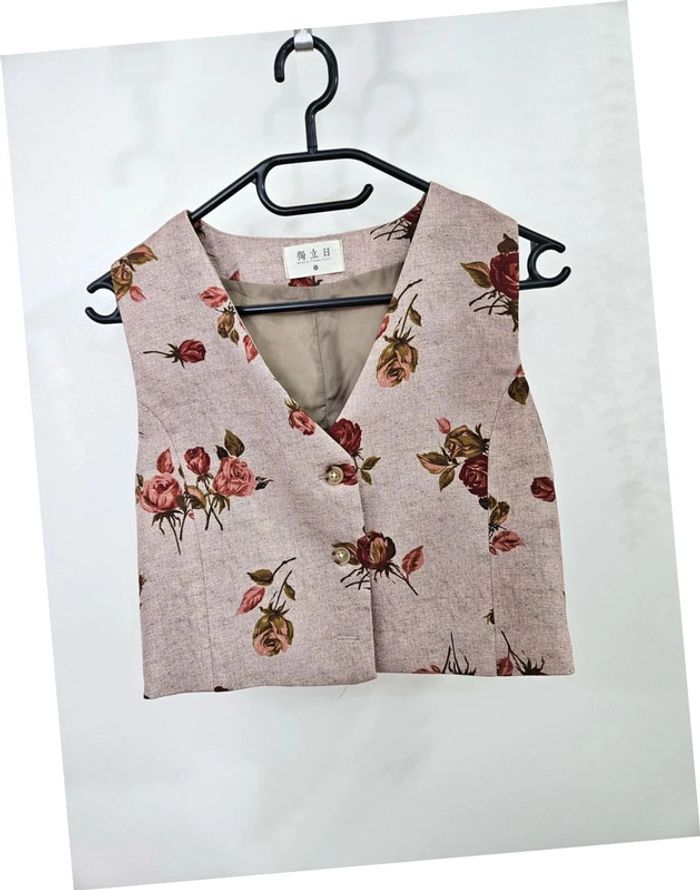 Gilet sans manches beige à fleurs taille S - photo numéro 1