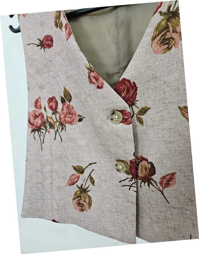 Gilet sans manches beige à fleurs taille S - photo numéro 4