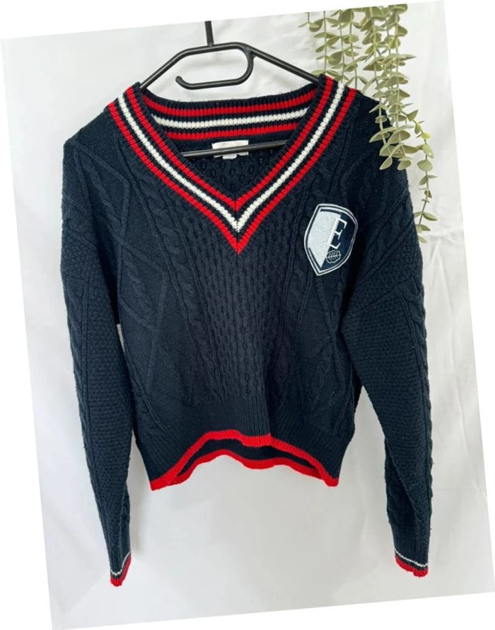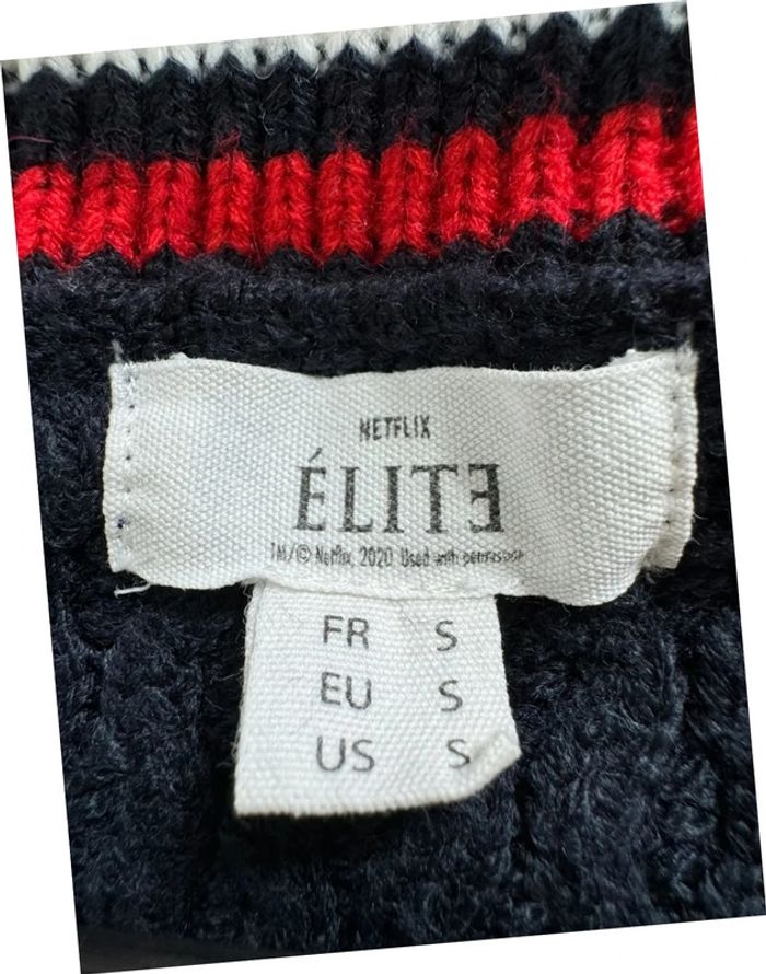 Pull court torsadé bleu marine en maille logo brodé Élite taille S - photo numéro 5