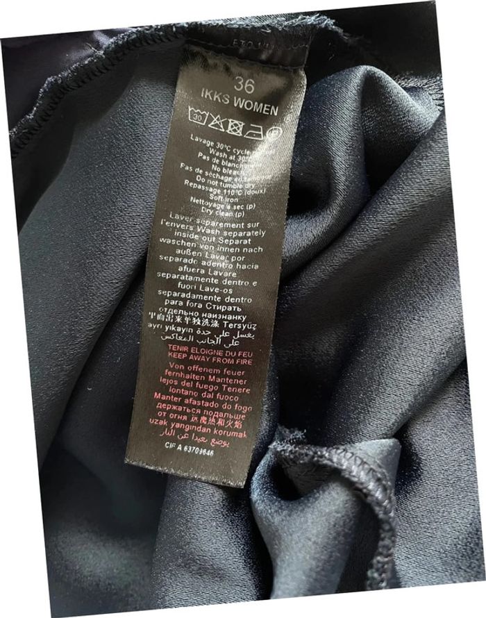 Coupe droite, long matière souple au tombé parfait Fermeture par zip et crochet Matière légèrement abîmée poche arrière (voir dernière photo)