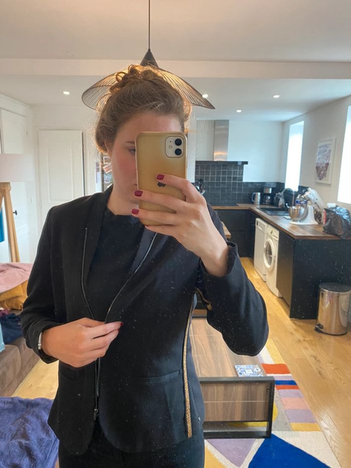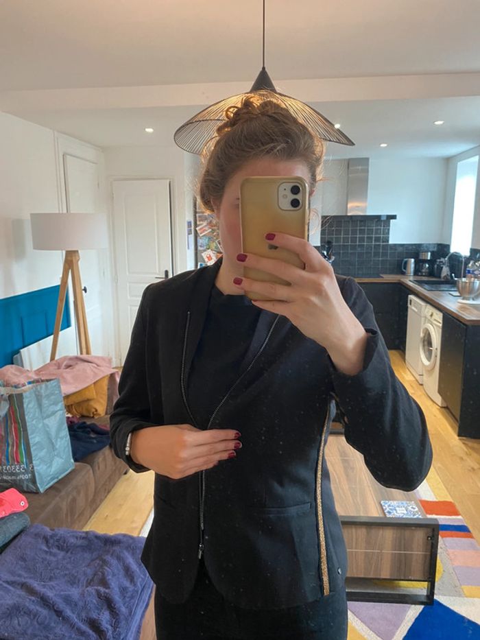 Veste blazer noir avec bande doré Marque miss captain trend Taille 38 Très bon état