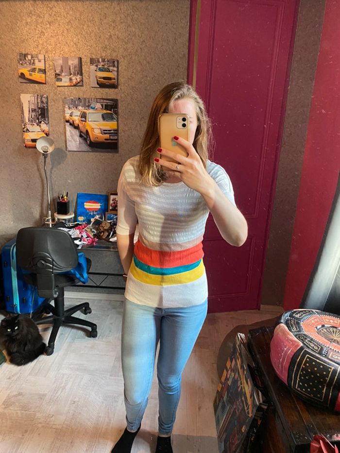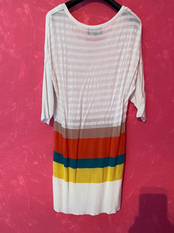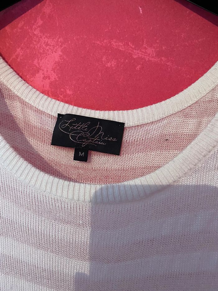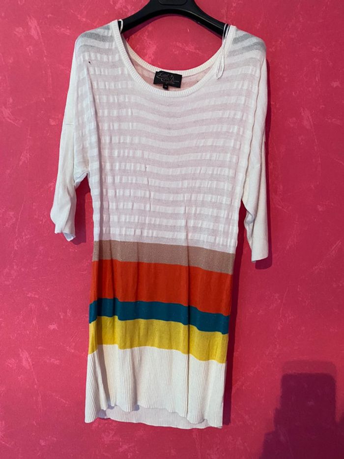 Pull fin blanc et bandes colorés Marque little miss captain Taille M Peu porté