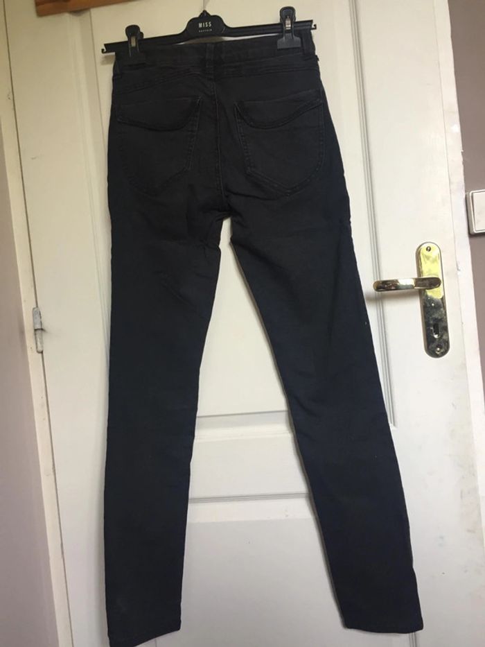 Jean coupe droite Couleur gris/noir, avec brillant sur les poches (quelqu’un de décollé) Marque miss captain Taille 34