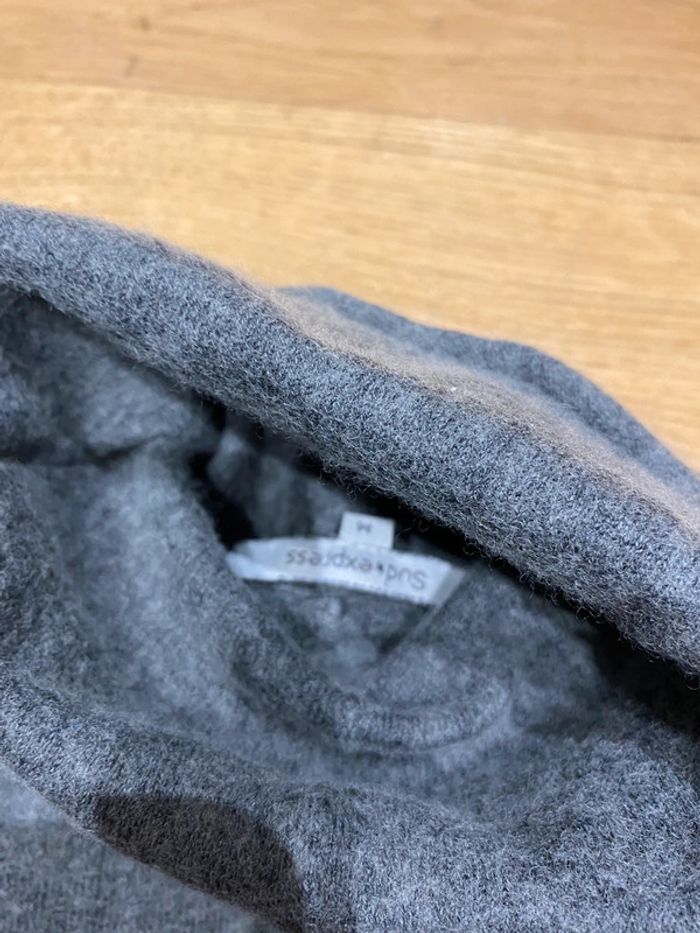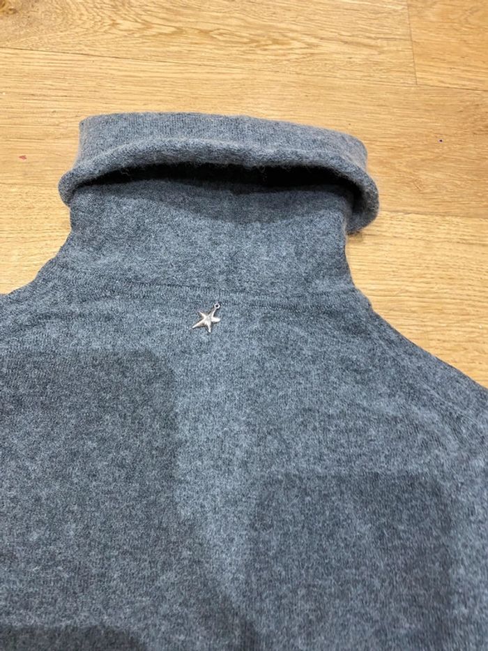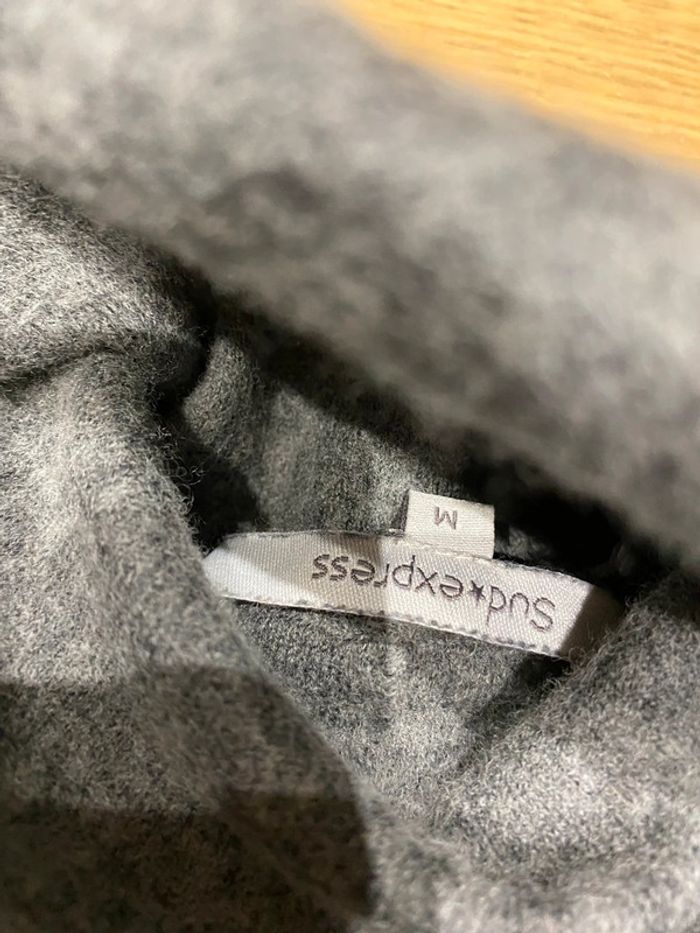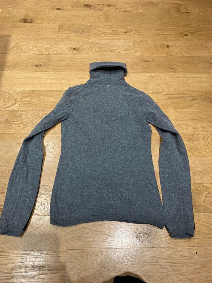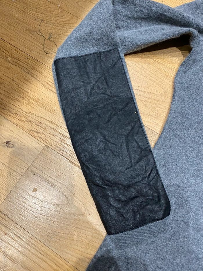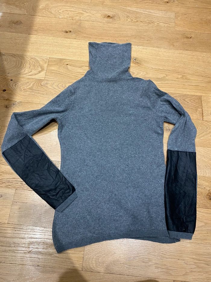 Pull col roulé gris avec empiècement en cuir sur lés avant bras Marque Sud Express Taille M