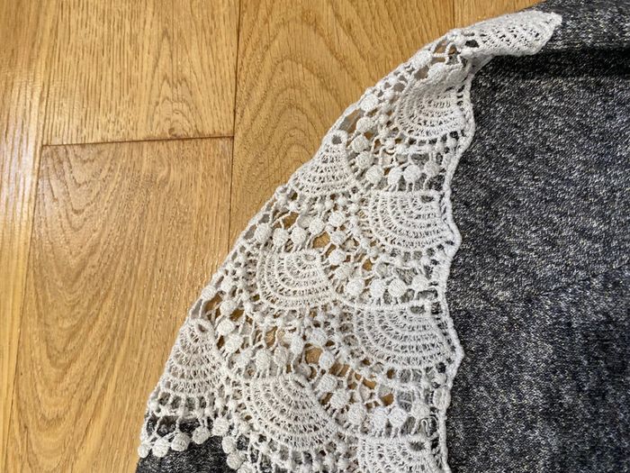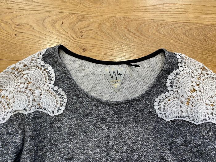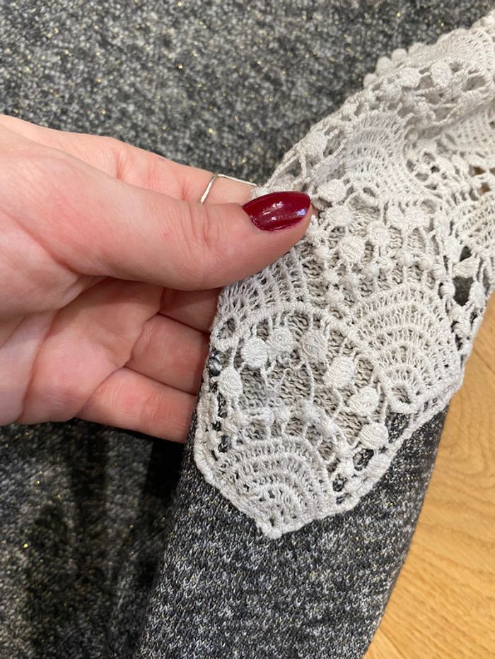 Pull ikks gris irisé et dentelle en M - photo numéro 1