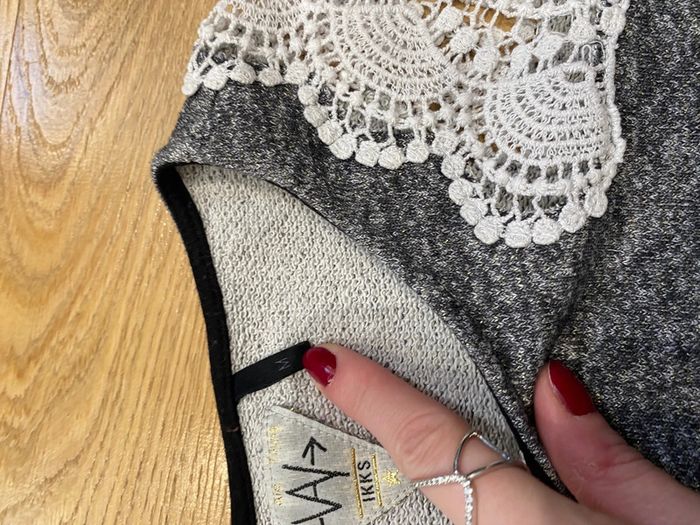 Pull ikks gris irisé et dentelle en M - photo numéro 4