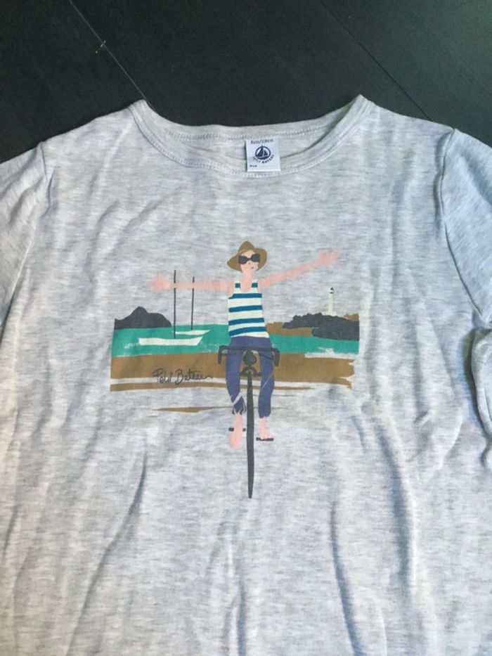 T-shirt manche courte Marque petit bateau Taille 8 ans Gris avec motif vélo