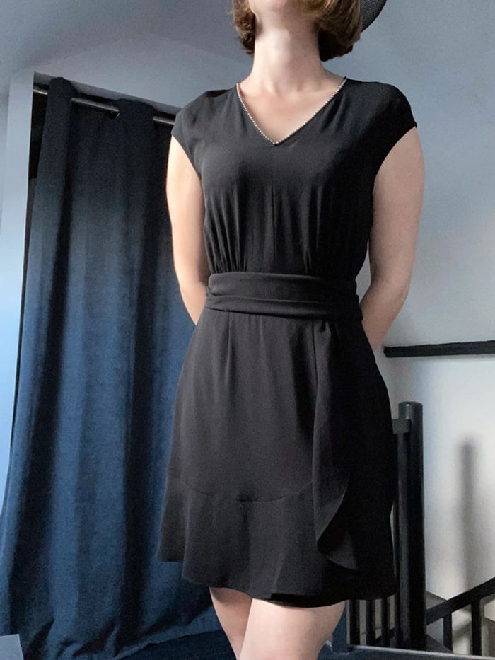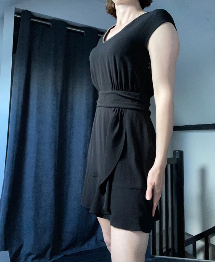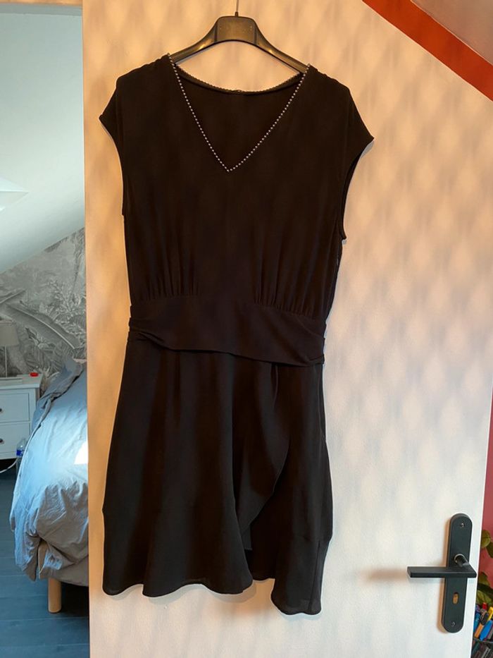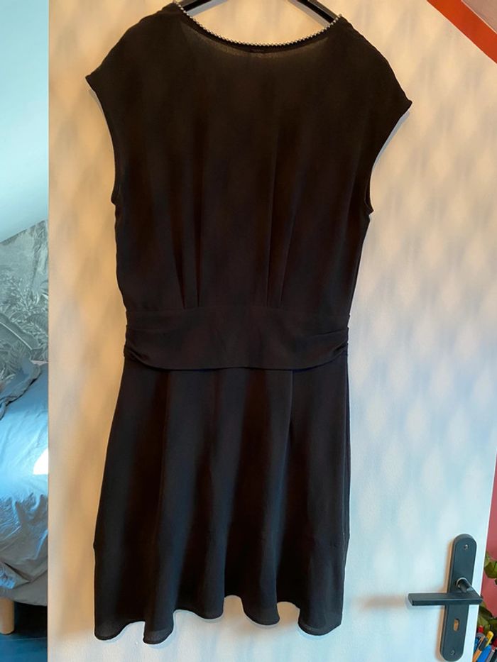 Jolie robe noire Marque ikks Resserrée à la taille Encolure avec bille argenté, effet collier Fermeture sur le côté Taille 36 Porté 2 fois, parfait état