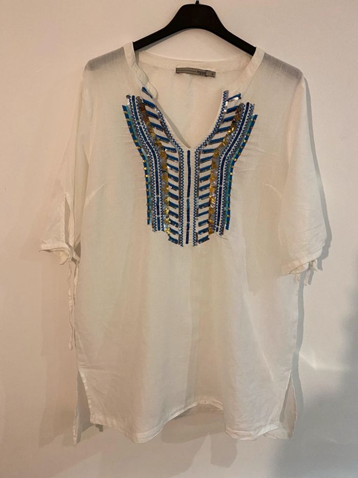Blouse/tunique miss captain collection Trend Manche 3/4 Blouse blanche col avec bordureunique Taille 42