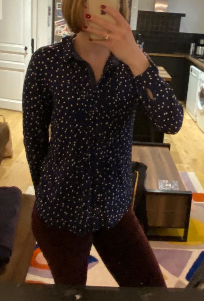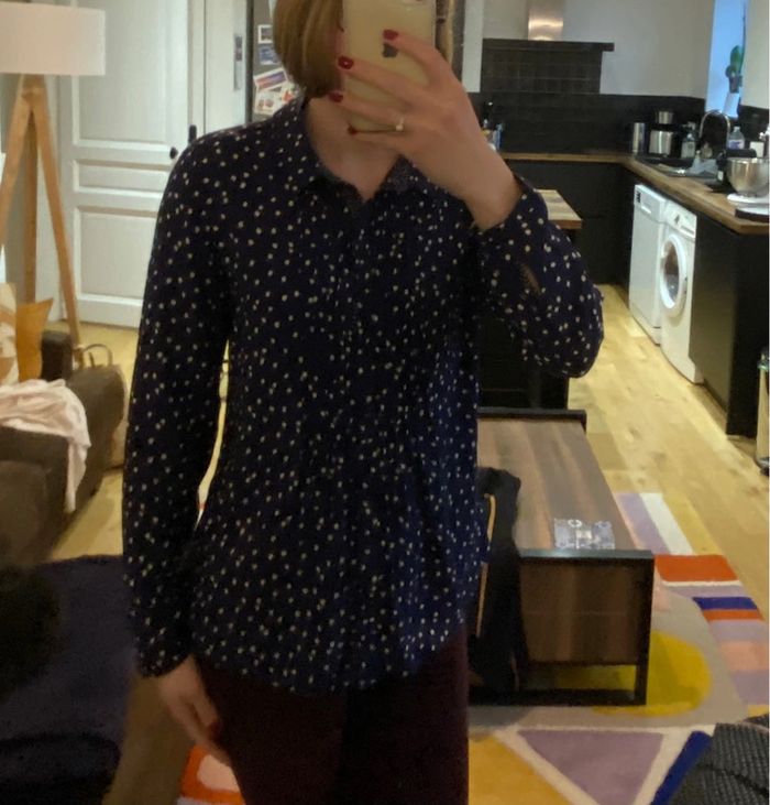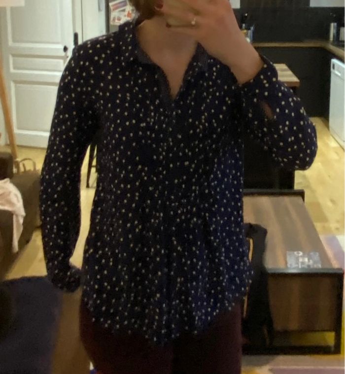 Chemise bleu marine à pois blanc Miss captain Taille 38 Très bon état, peu porté