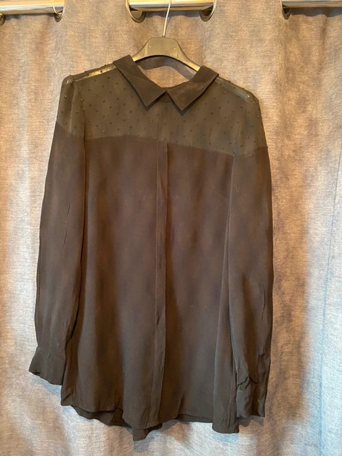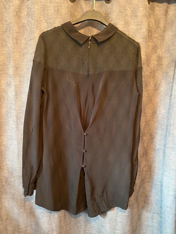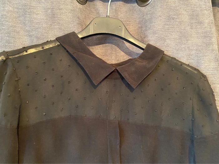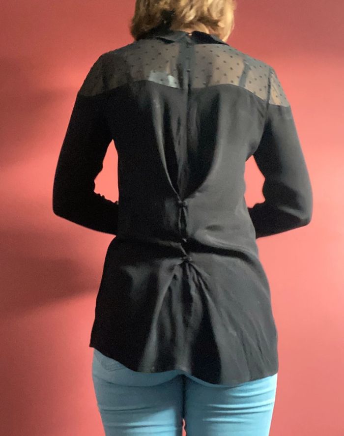 Blouse noire Haut en voilage avec des petits ronds 3 boutons dans le dos pour ajuster la blouse Marque Sud express Taille S