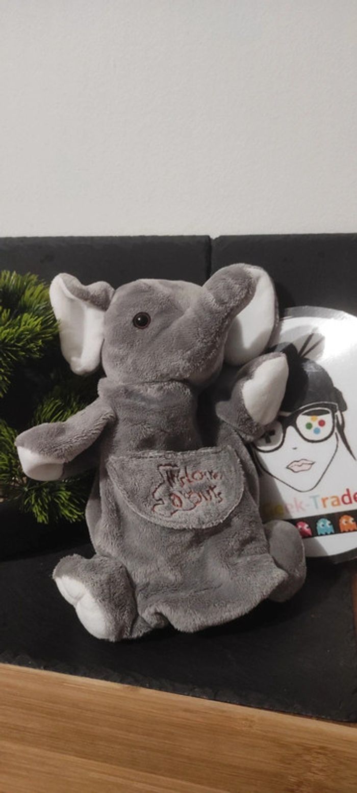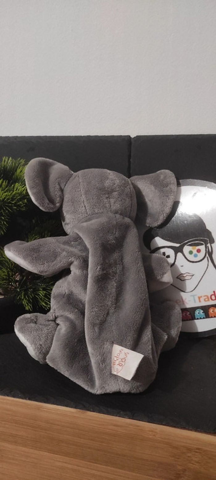 doudou Marionnette éléphant histoire d'ours gris poche blanc marron Yeux Billes