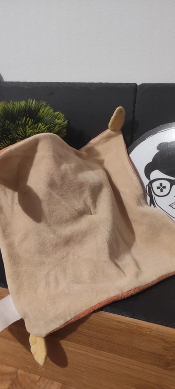 Doudou Singe Plat Orange Les Loustics moulin roty beige carré - photo numéro 2