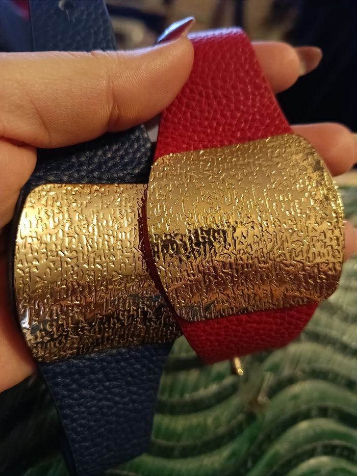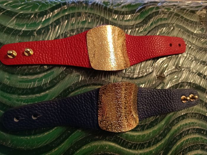 2 Bracelets en sky souple rouge et bleu nuit avec du doré sur le milieu 2 crans pour attacher le bracelet Jamais porté
