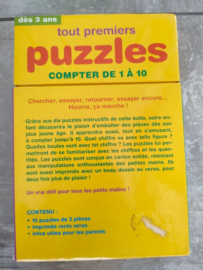 Puzzle en carton solide pour apprendre à compter jusqu'à 10. En très bon état
