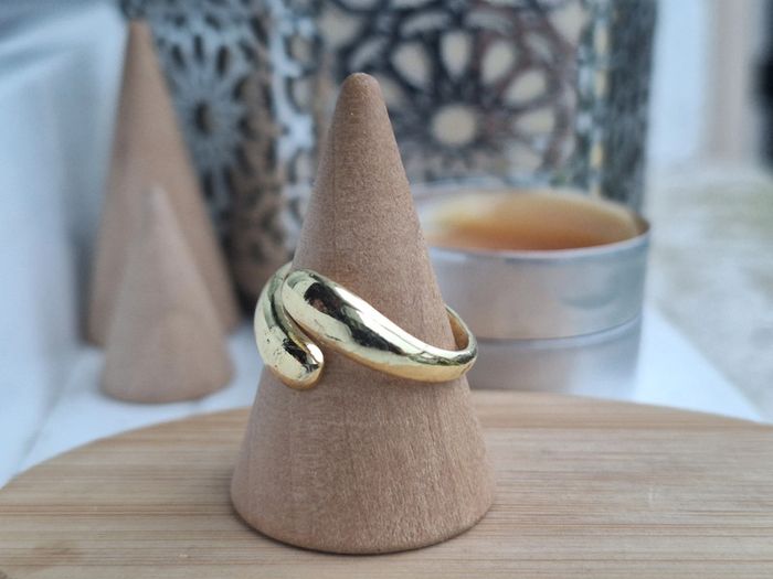 Bague Ouverte dorée en acier inoxydable, forme de goutte d'eau Bague design ouvert Ajustable - photo numéro 3