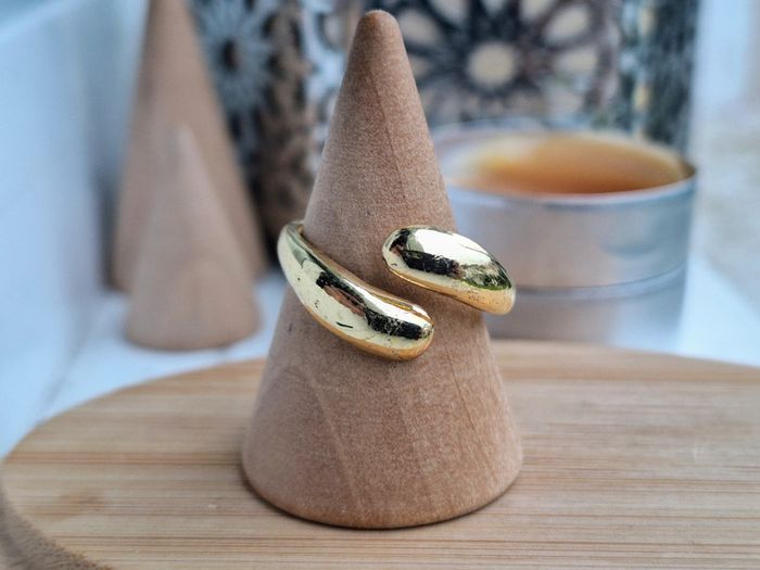 Bague Ouverte dorée en acier inoxydable, forme de goutte d'eau Bague design ouvert Ajustable - photo numéro 4