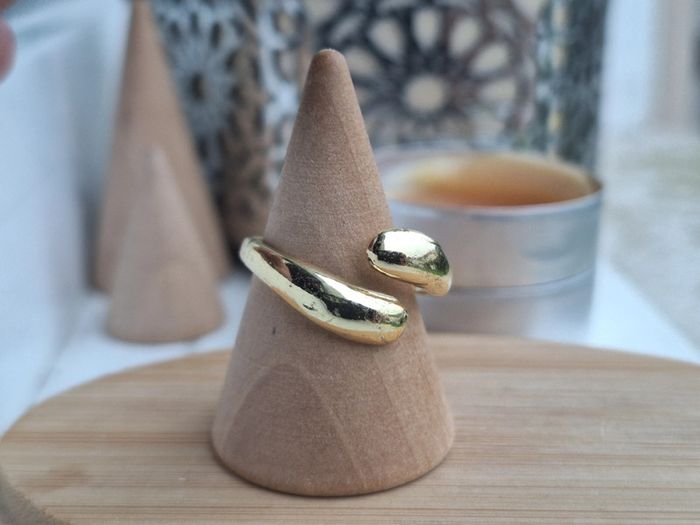 Bague Ouverte dorée en acier inoxydable, forme de goutte d'eau Bague design ouvert Ajustable - photo numéro 2