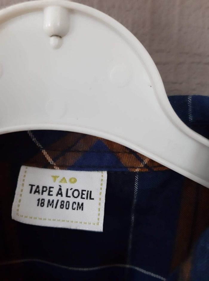Chemise carreaux bleu et moutarde Tape à l Œil Très bon état Réf LAU 71 - 9 Taille 18 mois 80 cm Prix 4 €