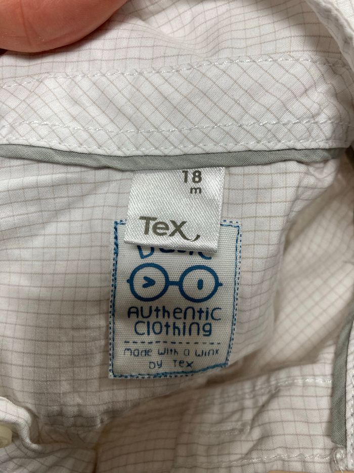 Chemisette blanche à carreaux fins gris Marque : Tex Taille : 18 mois Matière : 100% coton Etat : très bon état N’hésitez pas à regarder l’ensemble du dressing, je fais des prix pour les lots 🍀