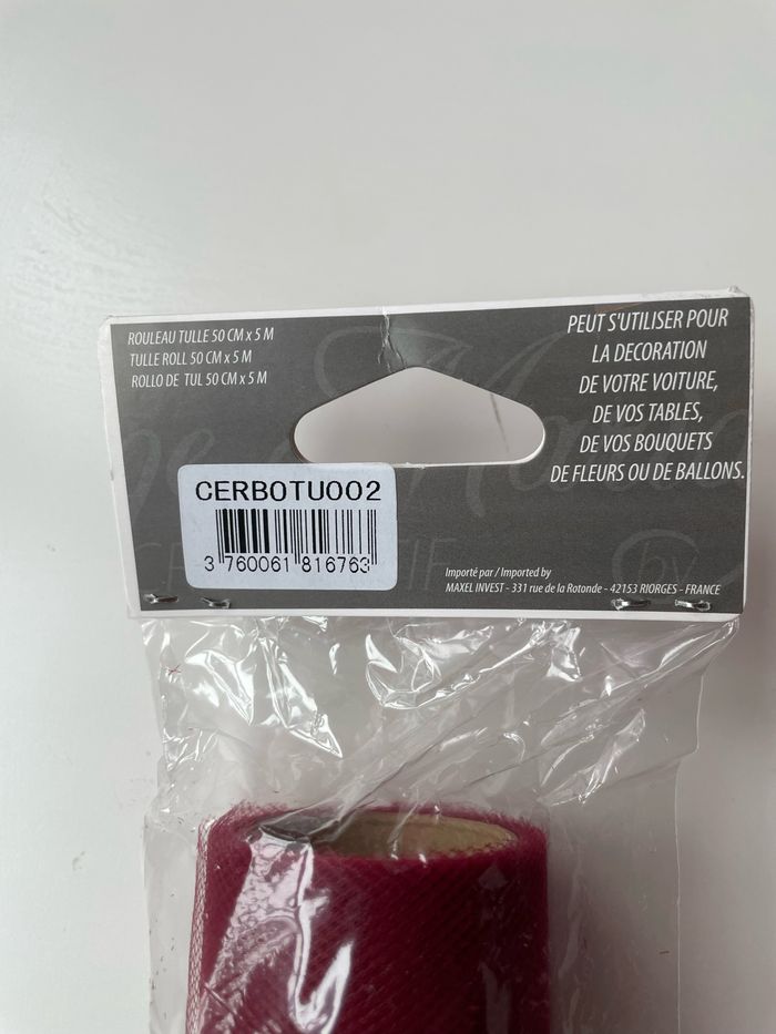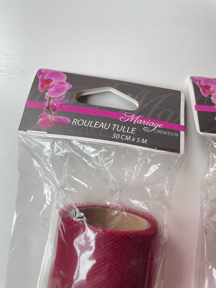 Décorations de fête neuves 2 rouleaux de tulle bordeaux large de 50 cm et long de 5 mètres Idéal pour décorer vos événements: pour la voiture, chaises, bancs, composition florales etc Lot possible avec d’autres articles alors n’hésitez pas #fête #mariage #décoration #bapteme #anniversaire