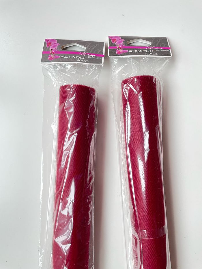 2 rouleaux de tulle bordeaux 50cmx5 mètres
