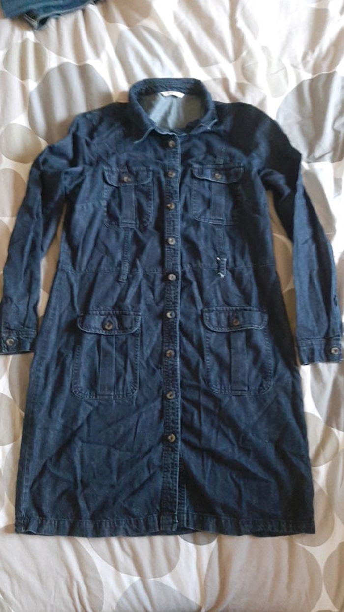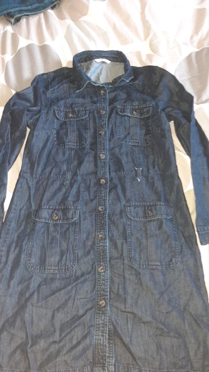 Tres belle robe chemisier en jean bouton devant manches longues