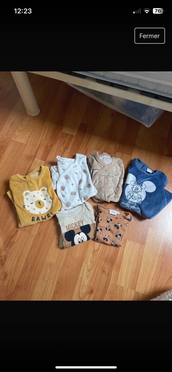 En excellent état de taille 3 mois. 4 pijamas et 2 bodies manches longues de marque Disney et inextenso