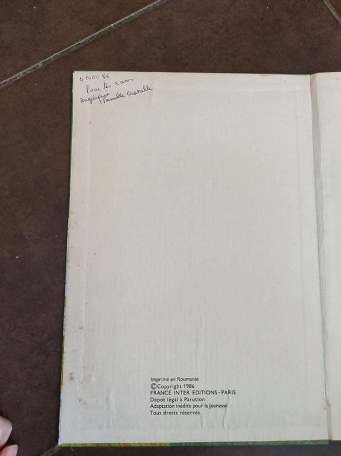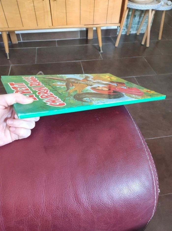 Livre / album illustré ' le petit chaperon rouge. De Charles Perrault Collection Prune - rare France Inter édition 1986 ( vintage ) Imprimé en Roumanie. 33,5 x 23,5 cm. Jolie illustration dessinée pour cet album et ce conte incontournable. Couverture cartonnée rigide dessin du chaperon avec le loup portant le panier a sa mère grand sur fond vert. Imperfections (pages un peu jauni, mention écrite 1ere page - peut etre recouverte par une vignette et le prenom de celui / celle a qui vous l'offrez). Je possède d'auutres de cette même collection et pratique la vente en lot a prix reduit , si jamais ! Attention référence isbn ne correspond pas.