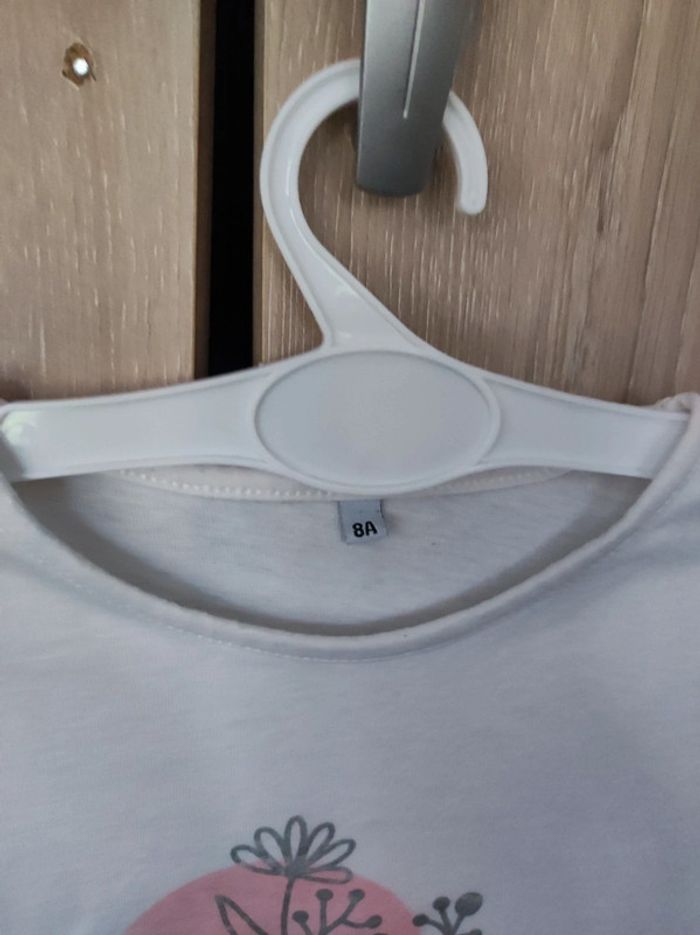 Tee shirt ML blanc fleurs coton 8 ans - photo numéro 5