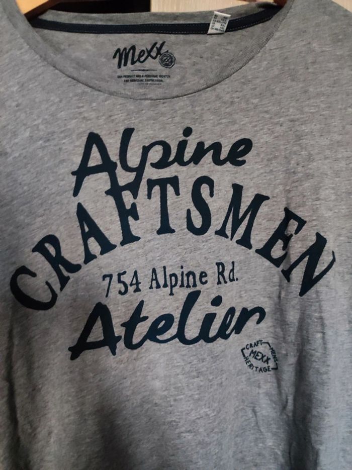 Pull type sweat Taille XXXL Marque Mexx Col rond / manches longues / coloris gris unks avec ecriture Alpine craftsmen Atelier 100 % coton Parfait etat