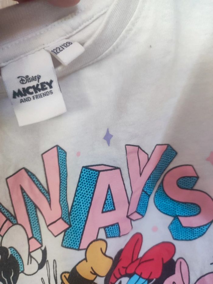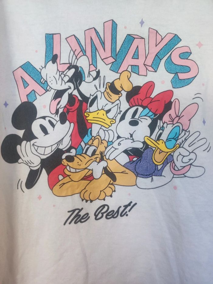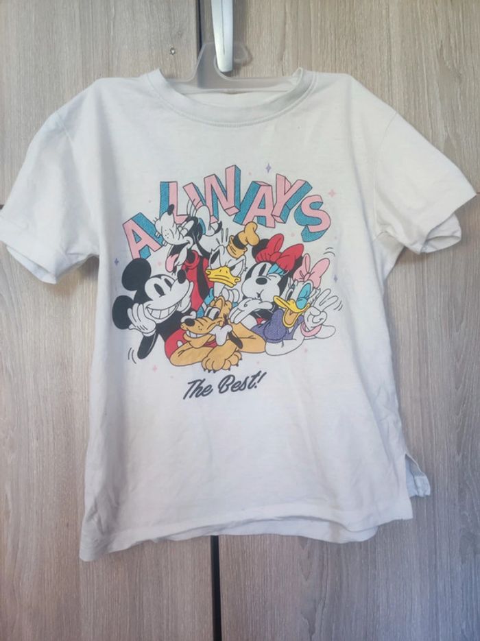 T shirt 7 - 8 ans Marque Disney Modèle Mickey ans Friends Col rond petites manches . Coloris blanc avec motifs imprimé multicolore. Tous les personnages des dessins animés disney reunis : daisy / Minnie / Pluto / Mickey / Donald / Dingo Finition : petites fentes de chaque côté Parfait état Coton sans étiquette #jemholofille7ans #jemholofille8ans