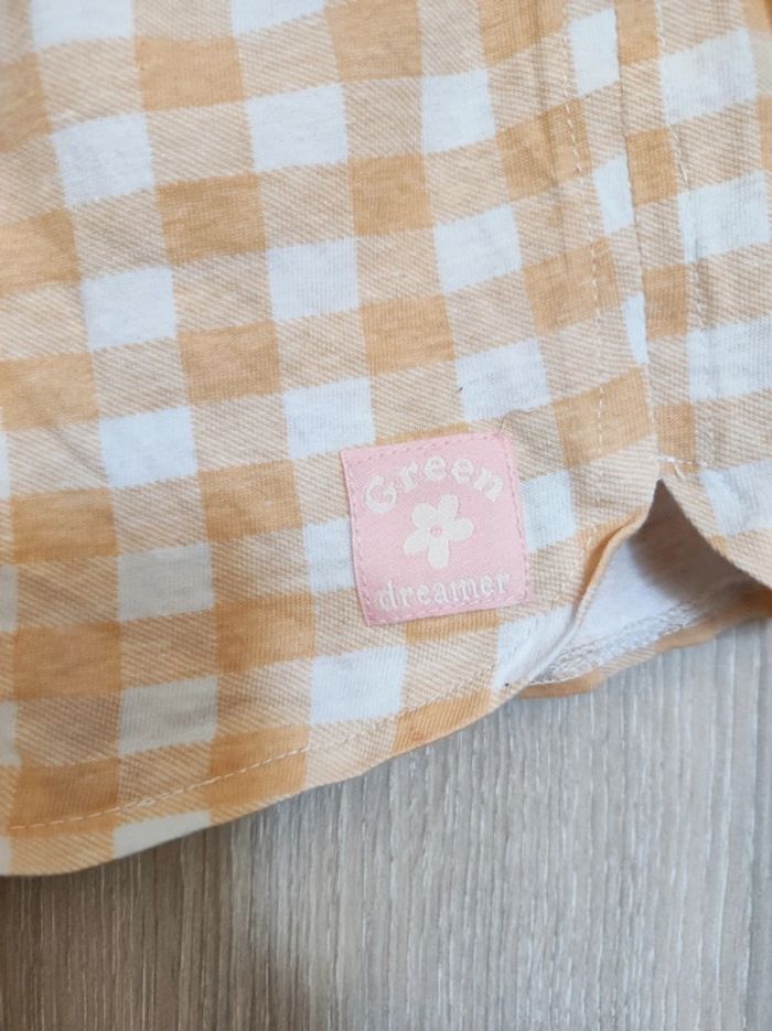 Petit short a carreaux Taille 7 ans ( sans etiquette) Marque zeeman Large et fluide. Taille extensible. Blanc imprimé carreaux orange. Modèle green dreamer rétro Coton ( sans étiquette) Parfait état #jemholofille7ans