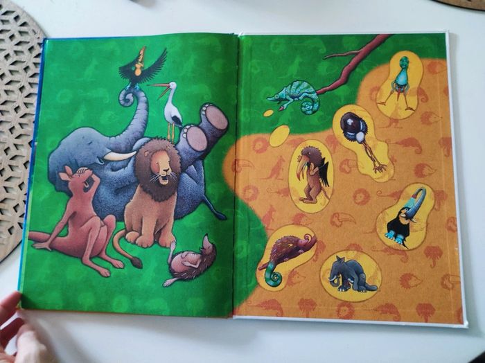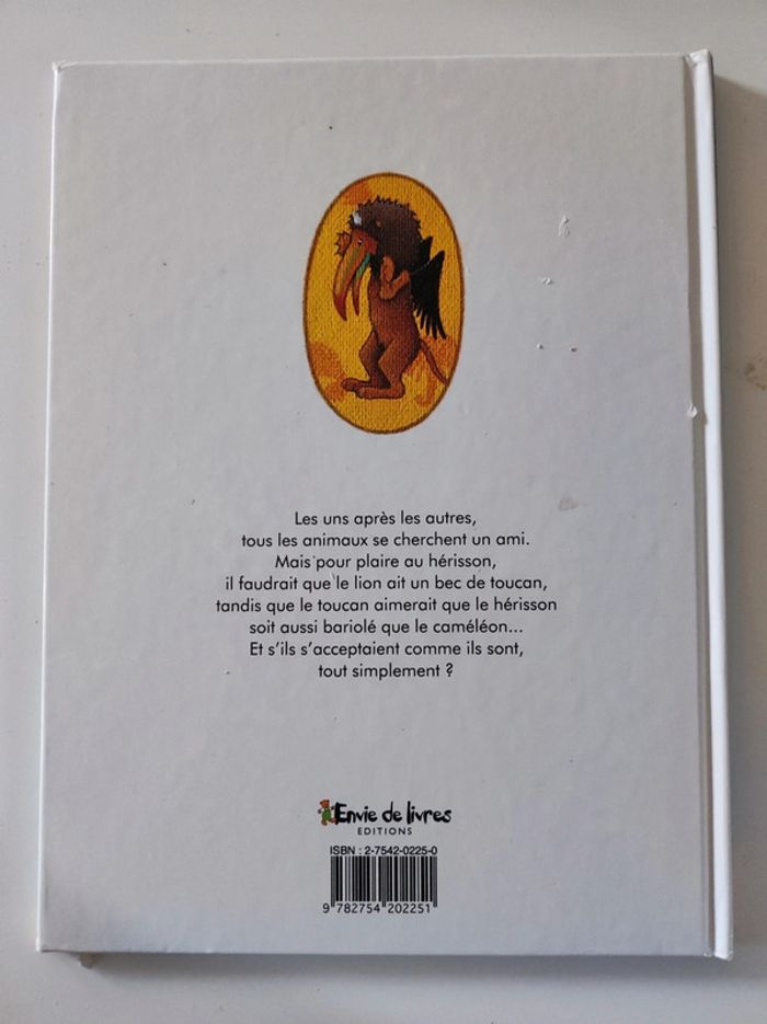 Livre / album illustré jeunesse Si l'éléphant avait des ailes De Marcus Pfister Envie de livres editions Mes plus belles histoires 2006 Si le lion avait un bec de toucan, il serait l'animal préféré du hérisson; si les piquants du hérisson changeaient de couleur comme le dos du caméléon, il serait l'animal préféré du toucan, etc. Idée originale pour présenter les caractéristiques propres à chaque animal. Interieur impeccable. 2 coins couverure légèrement abîmé.