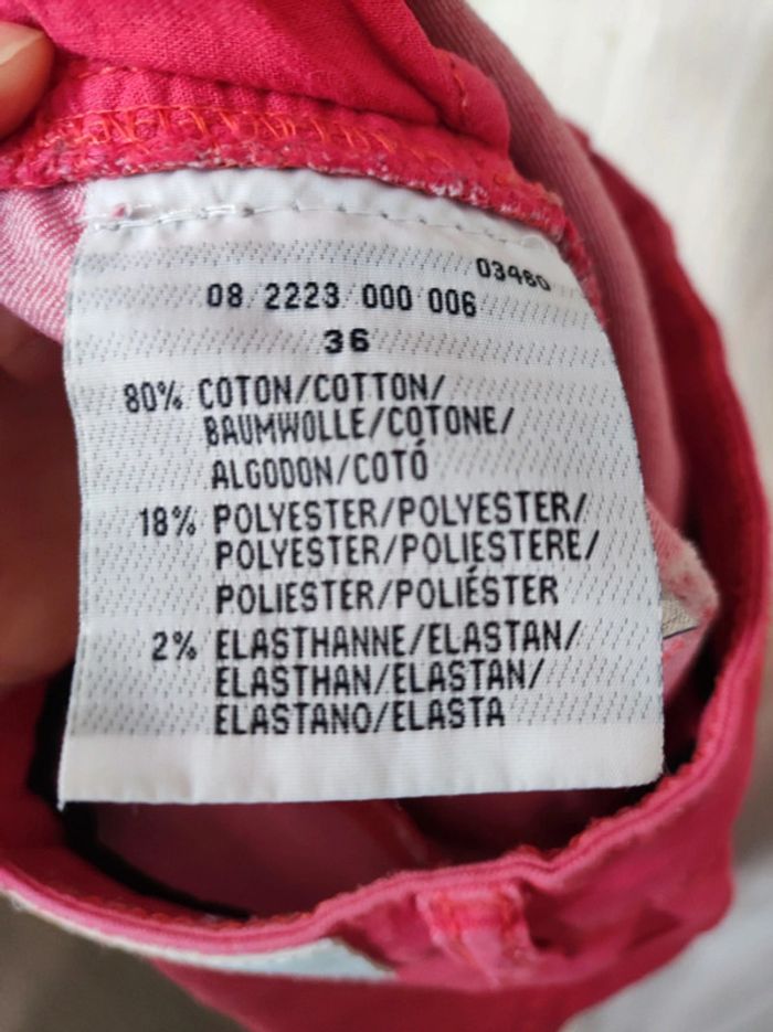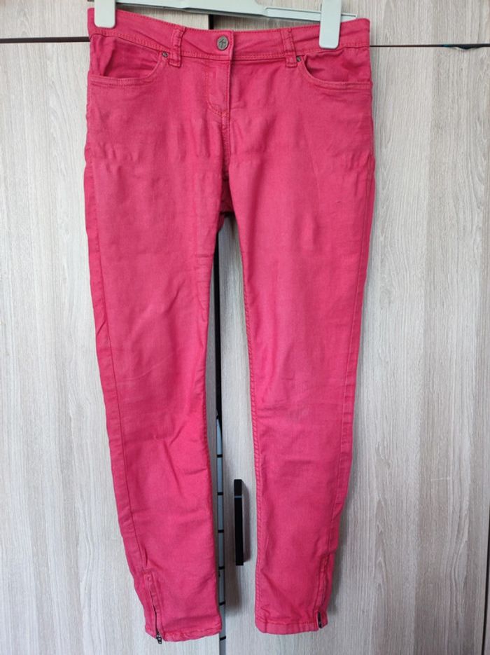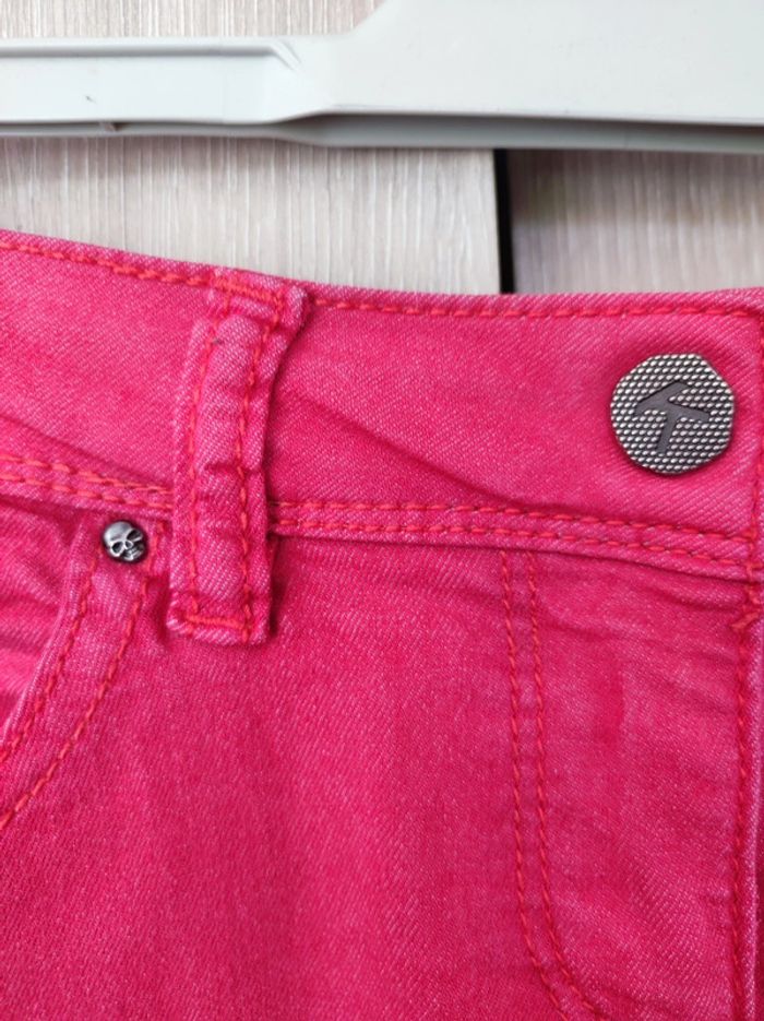 Pantalon style jean coloré Taille 36 Marque K by Kookaï Modèle coloris rouge clair. Style rock avec petites pieces metalliques tête de mort et fermeture eclair métal sur chaque patte. Passants ceinture + poche Coupe moulante slim 80 % coton 18 % polyester et 5 % elasthanne Petite imperfection : un mini accroc sur 1 poche Sinon parfait état Pour retrouver tout mes articles sans effort de cette même taille : #jemholofemme36