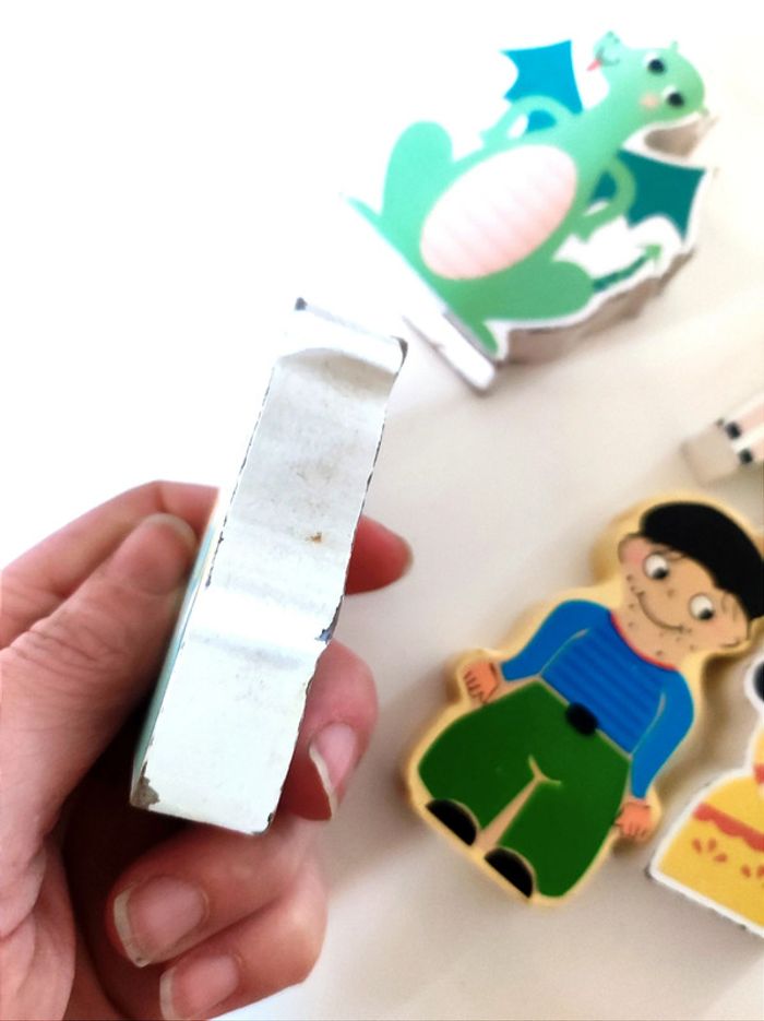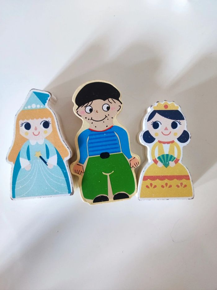 Lot 5 jouets vintage / rétro Figurines en bois manipulable pour les tout petits Les personnages : fée bleu , princesse en robe jaune et jeune homme Animaux fantastiques : dragon vert et licorne rose a crinière bleu Matiere bois léger peints en blanc et multicolore. Figurine tres epaisse 1,5 cm . 7 a 8 cm de hauteur. Tres solide quasi incassable. Tranches presentes des imperfections voir photo