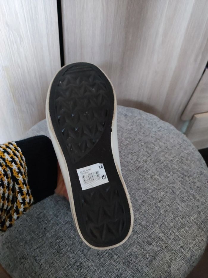 Basket holographique Taille 36 Marque In Extenso Baskets basses type running / tennis. Matière plastique lavable avec petites semelle. Bordures arrière et languette nacré holographique violet irisé Je les ai porté une fois ( trop petite pour moi ) Étiquette encore en dessous. Coloris blanche avec lacet blanc . liseré blanc. Quelques micro traces sur semelle qui doivent se nettoyer.
