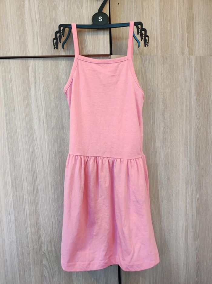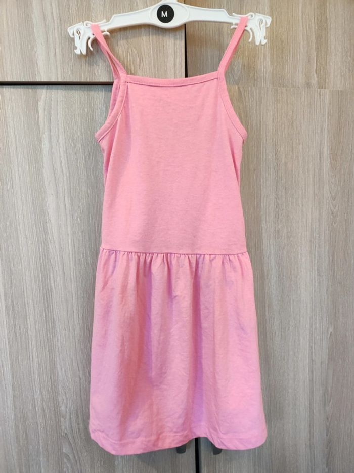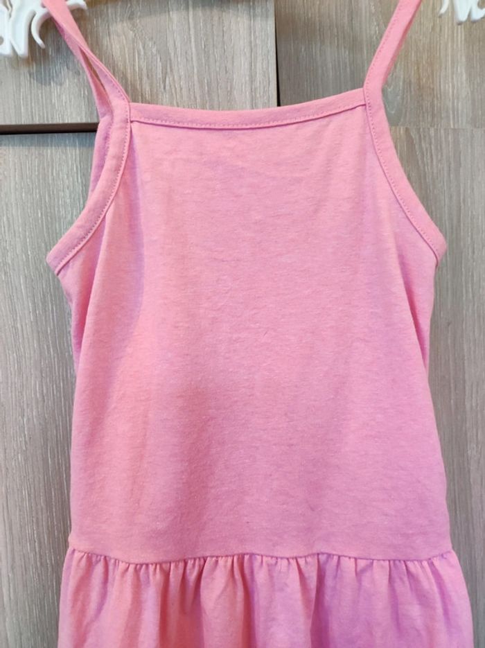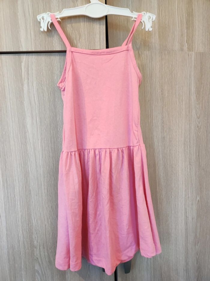 Robe été / estival 6 ans 110 / 116 cm Marque zeeman Col rond avec fines bretelles. Coloris uni rose avec leger effet chiné blanc. Marqué a la taille puis part en évasé. 60 % coton 40 % polyester Parfait état 62 cm de long #jemholofille6ans