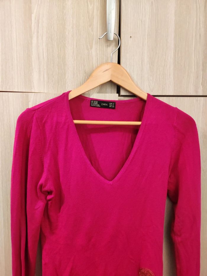 Pull fushia col V t 36 soie vegan Zara - photo numéro 2
