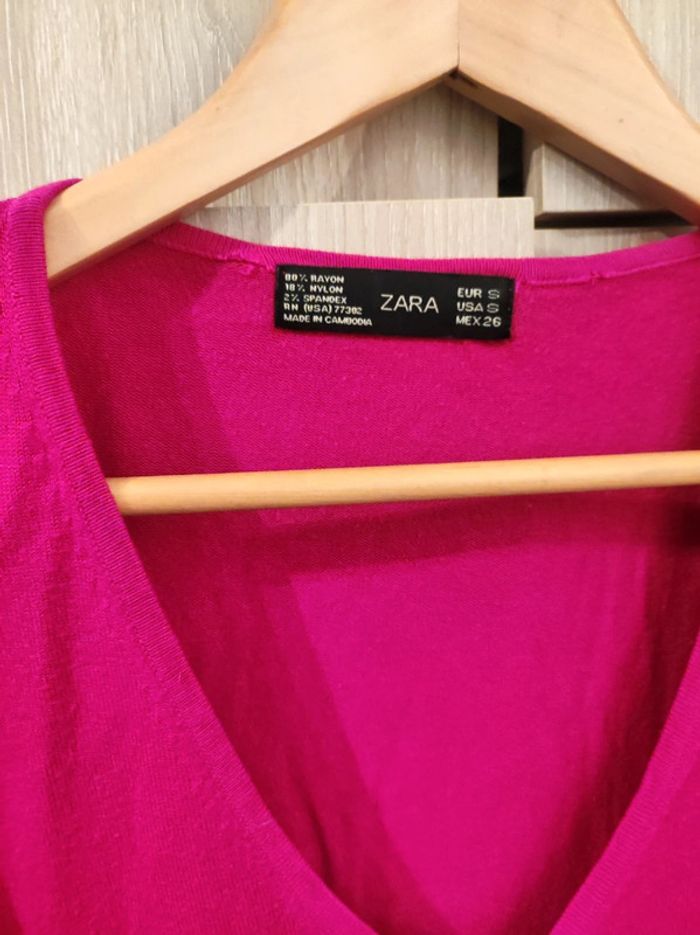 Pull fushia col V t 36 soie vegan Zara - photo numéro 3