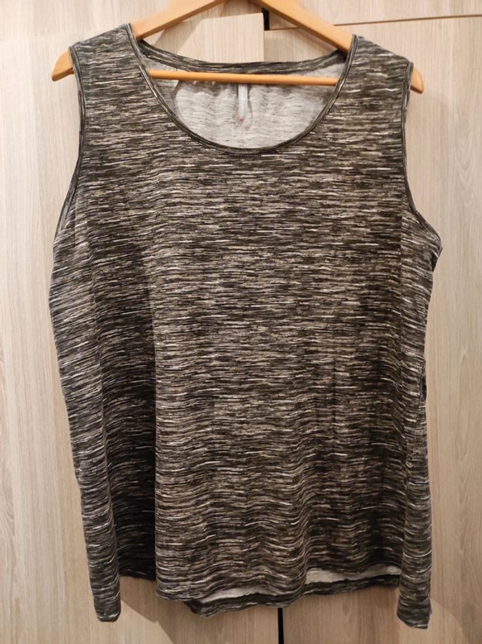 T shirt / top / debardeur Marque blancheporte Taille 52 / grande taille Col rond , sans manches . Coupe pleine avec motif imprimé fines rayures blanches et grises irrégulières. Idéal pour le sport ou sur un jean. 100 % coton epais , de qualité. Longueur : 66 cm / aisselle a aisselle : 57 cm Comme neuf. Pour retrouver tout mes articles sans effort de cette même taille : #jemholofemme52