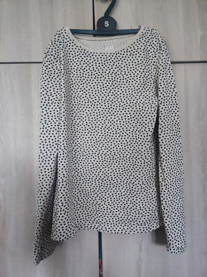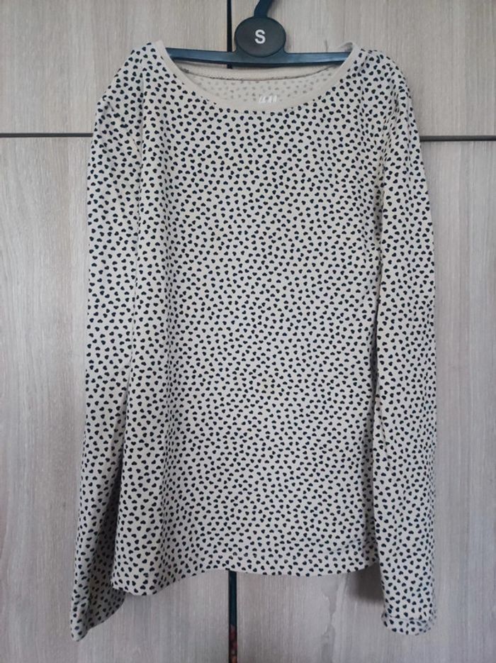 Sweatshirt / Sous pull / maillot de corps Taille 7 - 8 ans / 122 - 128 cm H&M Col rond. Manches longues. Coloris blanc cassé presque beige abec motifs imprimés petit coeur noir. 95 % coton 5 % elasthanne ( matière fine ) Peut se porter au dessous d'un jean, en dessous dun pull ou dun gilet comme un maillot de corps ou en pyjama Parfait etat. Comme neuf. #jemholofille7ans #jemholofille8ans