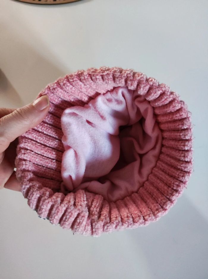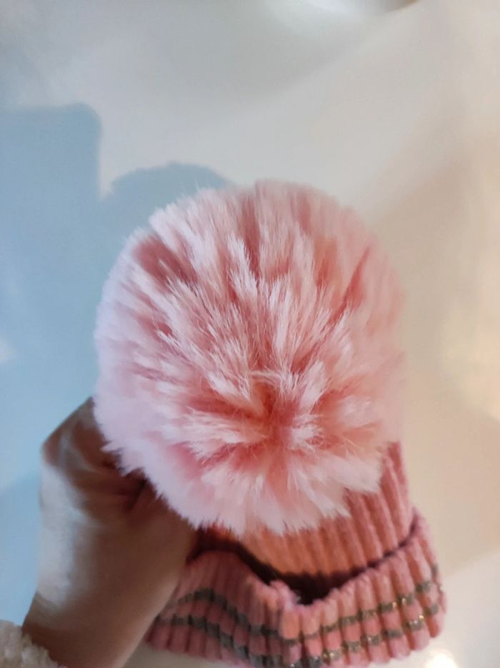 Bonnet rose pompom poil & bandes brillantes - photo numéro 7
