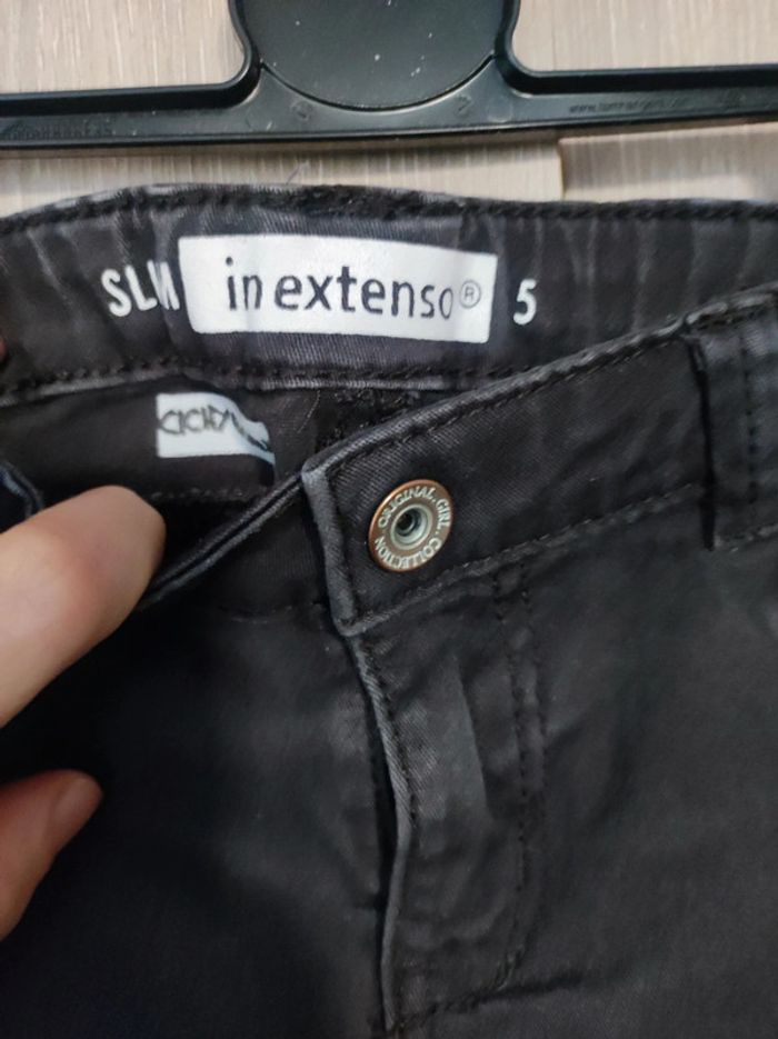 Jean gris foncé ( presque noir) Taille 5 ans Marque in extenso Petites poches avant et arrière. Et decor de petites fermeture eclair couleurs cuivré. Passant pour ceinture. 98 % coton et 2 % elasthanne Parfait etat #jemholofille5ans