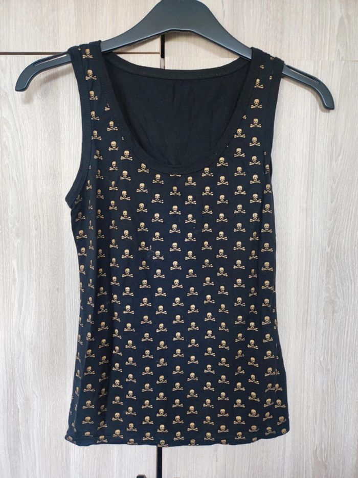 Debardeur noir tête de mort dorée t 34 - photo numéro 1