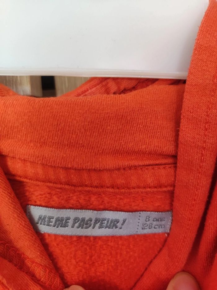 Pull sweat sport orange T 8 ans Meme pas Peur ! - photo numéro 4