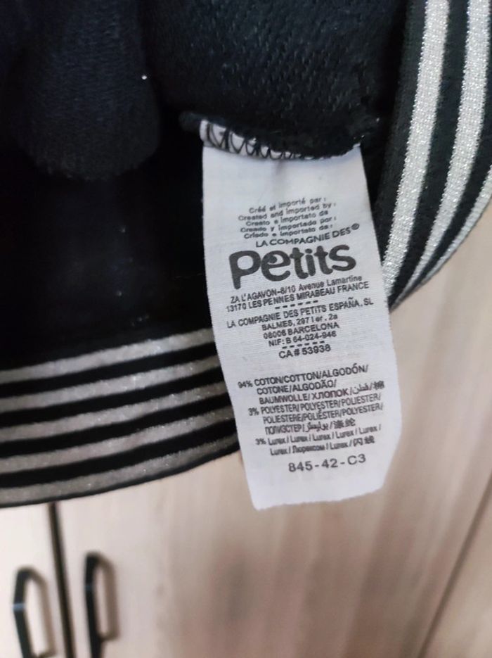 Veste gilet noir a zip / zippée Marque la compagnie des petits ( lcdp) 6 ans Couleurs noir avec paillettes argentées. Fermeture en metal argenté. Col et ceinture avec rayures noir et argent. En coton, polyester et lurex. Parfait etat. Il existe 2 points noir ton sur ton quasi invisible - visible sur la dernieres photos. (Tâches ou défauts de teinture je ne sais pas...). #jemholofille6ans