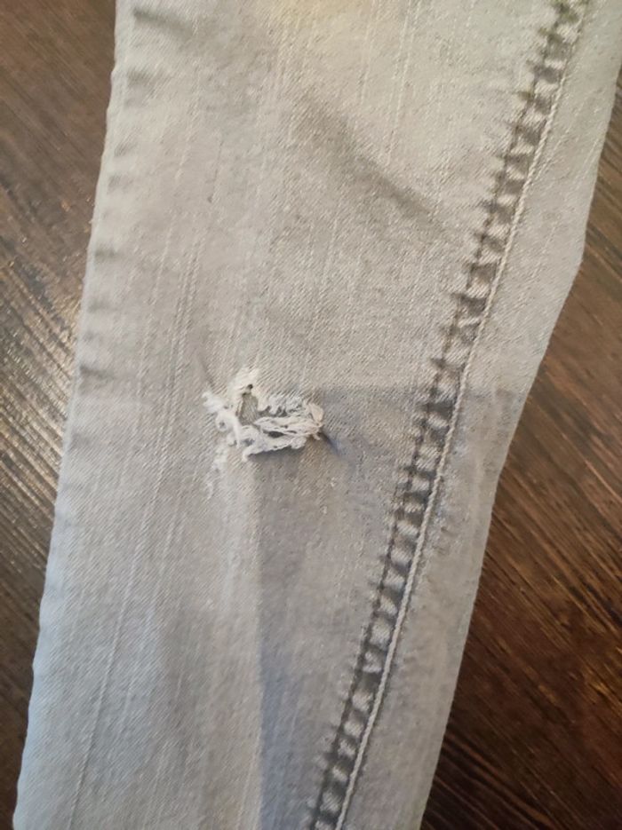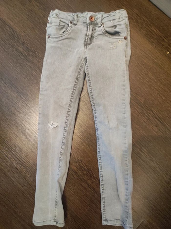 Jean gris clair Marque Garcia jeans 6 ans / 116 cm Poches avant et arrieres. Passants pour ceinture. Fermeture éclair et boutons métal cuivré. Petite brodure étoile doré sur le côté avant Trou effet usure ( d'origine ). Parfait état comme neuf. Coton polyester et elasthanne Élastique a l'intérieur. #jemholofille6ans